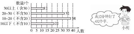 ①1分钟打字个数在30以上(含30)的学生有12人;