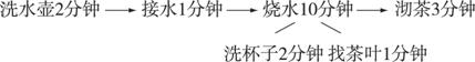 解答:小红可以这样安排,先洗水壶2分钟→接水1分钟→烧水10分钟[可以同时洗杯子(2分钟)+找茶叶(1分钟)]→沏茶3分钟…………(8分)