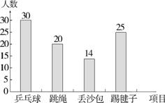(2)喜欢乒乓球的人数最多,喜欢丢沙包的人数最少。
