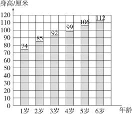 (3)从完成条形统计图的情况来看,李明7岁时身高最少增加6厘米,最多增加11厘米,呈逐年长高的趋势,且增长幅度略有下降,所以可以预测李明7岁时身高大约在118厘米~123厘米之间。……(6分)