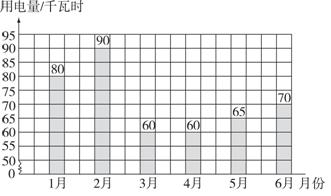 6月份用电量70千瓦时,在竖轴上找到70千瓦时。