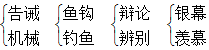 一、1.小心翼翼 操纵 诱惑 2.捕捞 鳃 皎洁 吩咐 3.告诫 实践