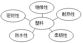 塑料餐具利用了塑料的耐热性和耐腐蚀性;塑料袋和塑料瓶利用了塑料的密封性和韧性;塑料雨衣和塑料雨伞利用了塑料的防水性;插排和插头利用了塑料的绝缘性。