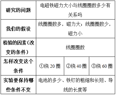 我们可以检验磁力大小与电池节数、线圈粗细、铁芯粗细、铁芯长度等的关系。