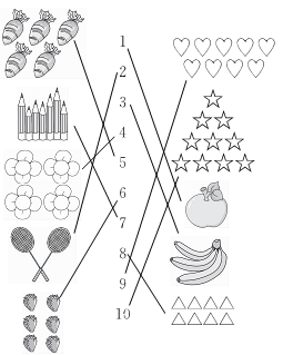 分析:一位客人用一个盘子,可数出桌上共有10个盘子,所以小兔家来了10位客人。