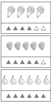(2) 分析:1个人吃饭用一套餐具,5个人吃饭就用5套餐具。第一幅图有2套餐具,还缺3套;第二幅图有4套餐具,还缺1套;第三幅图有5套餐具,正好够用。