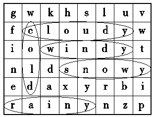 一、1.windy E 2.rainy C 3.sunny A 4.snowy D 5.cloudy B