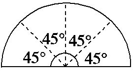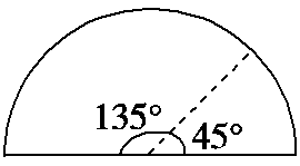 分析:半圆圆心角的度数是180°,把半圆平均折成4份,就是把180°角平均分成4份,每份是45°,其中的3份就是135°。