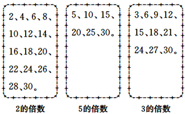 解答:2、5、3的最小公倍数是30。……(5分)
