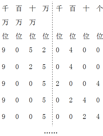 (2)最小的数,当数字个数一定时,要组成一个最小的数,就要把较大的数字写在低位上,这个最小的数是20000459。