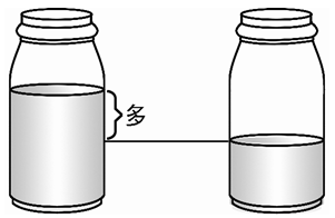 解答:把多的饮料想办法平均分成两份,倒入另一个瓶子中1份,这样两个瓶子里的饮料就同样多了。…………(3分)