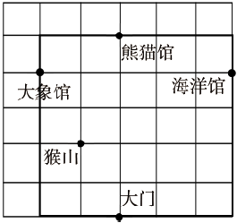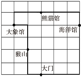 分析:(1)景点都是在大门的同一侧,想用最短的距离走完全部景点,可以把最外围的景点和大门按路线连成封闭的图形,如图所示