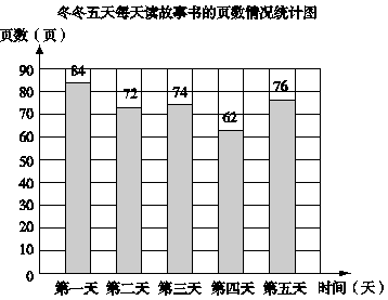 (1)解决此题就要求出冬冬前四天读的平均页数。根据统计表中的数据,可求出前四天读的平均页数是(84+72+74+62)÷4=73(页),由“比前四天读的平均页数还多3页”,可求出第五天读的页数是73+3=76(页)。