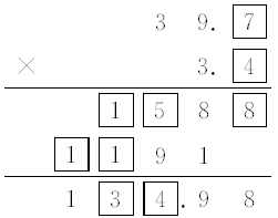 根据题中第二个积的个位是1,可推断出第一个因数的十分位是7,继而算出第二个积是1191。根据积的最后一位是8,得出第一个积的个位是8,即:
