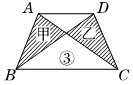 如下图,△ABC与△BCD是等底等高的两个三角形,所以它们的面积是相等的,都分别减去③的面积可推出甲的面积=乙的面积。
