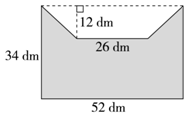 观察此图,阴影部分的面积是长方形的面积去掉梯形的面积,梯形的上底是26 cm,高是12 dm,下底与长方形的长相等,即52 dm。根据长方形的面积计算公式和梯形的面积计算公式可求出阴影部分的面积。