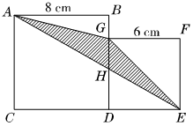 由图可知,阴影部分的面积等于两个正方形的面积和减去空白的部分的面积。空白部分由△ACE、△ABG和△EFG组成。S△ACE=(大正方形边长+小正方形边长)×大正方形边长÷2,即(8+6)×8÷2=56(cm2)。S△ABG=(大正方形边长-小正方形边长)×大正方形边长÷2,即(8-6)×8÷2=8(cm2)。S△EFG=小正方形面积÷2,即6×6÷2=18(cm2)。所以空白部分的面积=56+8+18=82(cm2),阴影部分的面积=8×8+6×6-82=18(cm2)。