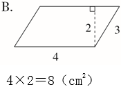 下列求平行四边形面积正确的是( )。(单位:cm)