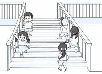 (1)下楼的小朋友靠( )边走,上楼的小朋友靠( )边走。