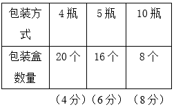 解答:选择第一、二、三种包装方式都正好能把这些饮料全部装完。…………(2分)