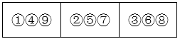 第一种分法:①②⑥;③⑤⑧;④⑦⑨。 第二种分法:①⑤⑦;②④⑧;③⑥⑨。