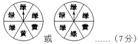 这是一道操作题,要求在转盘上涂上绿色和黄色两种颜色。转盘被平均分成了6份,要使指针停在绿色区域的可能性大,就要涂4份绿色,涂2份黄色或涂5份绿色,涂1份黄色。