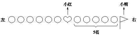 分析:小红排第7,小明排第13,用13-7=6(名)表示小明是小红后面的第6名同学,要求小红和小明之间有几名学生,需要去掉小明,再用6-1=5(名)即可求得。
