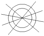 分析:本题考查的是圆的对称轴问题。单独一个圆有无数条对称轴,每条对称轴都是通过圆心的直线。在本题中,用两个大小不同的圆拼成一个图形,还要有无数个对称轴,那就必须使两个圆的圆心重合。