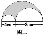 (2)如图二,阴影部分的周长是由大圆周长的一半与两个小圆周长的一半构成的。大半圆的周长为: