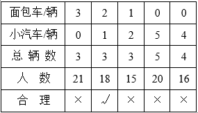 由表格可知,2辆面包车,1辆小汽车,正好都坐满, 即7+7+4=18(人)。