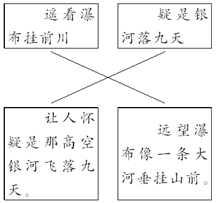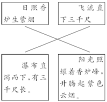 (4)这首诗的意思是:太阳照射的香炉峰升起紫色的烟雾,远远看去瀑布像一条大河垂挂在山前。水流从高处直泻而下,真让人以为那是银河从九重天落了下来。