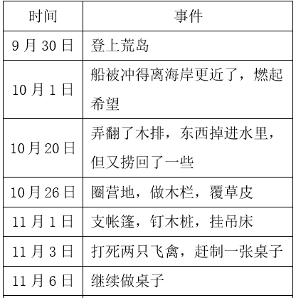 小明:我还有一个问题。课文按时间顺序写荒岛生存有什么好处呢?