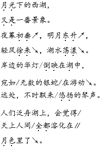 解析 本文是一篇写景散文,语言清新流畅,如诗如画。朗读基调是热爱与赞美的。语气要清新、亲切、柔和,语调要徐徐上扬,语速适中。朗读时,要入情入境,要真切地抒发出对西湖的赞叹与热爱之情;要抓住优美的词句,生动地表现出西湖独特迷人的景色和令人心旷神怡的感受。