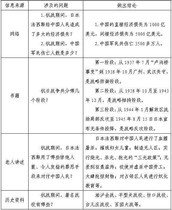 1.上网查阅有关抗日战争的资料。