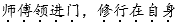 师傅领进门,修行在自身(shī fu lǐnɡ jìn mén,xiū xínɡ zài zì shēn)。熟能生巧,业精于勤(shú nénɡ shēnɡ qiǎo,yè jīnɡ yú qín)。意思是:学习主要靠自己,不能依赖别人。只有自己的“熟练”和“勤奋”才能换来“巧”与“精”。例句:古人告诉我们:“