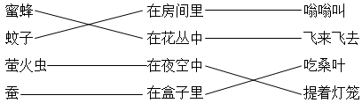 蜜蜂 蜜蜂在花丛中采蜜。 苍蝇 苍蝇是害虫。(答案不唯一)