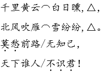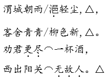 解析 这两首送别诗,既有离别之景,又有离别之情,朗读时要入情入境,准确地表达诗人的思想感情。如《渭城曲》的后两句,语调要低沉些。《别董大》的后两句,语调要高昂些,体现出豪迈之情。另外,还要注意朗读古诗时的重音和停顿。