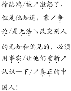 解析 这是一篇人物故事,赞扬了徐悲鸿为祖国勤学苦练的可贵精神。朗读时,认真体会徐悲鸿强烈的爱国之情,语气是愤懑(mèn)的,语调是刚毅凝重的;那个外国学生的歧视和偏见,语气是轻蔑的;当外国学生最后对中国人重新认识时,语气是忏悔和诚恳的,语调低沉。第三自然段,语调是铿(kēnɡ)锵(qiānɡ)有力的,徐悲鸿励志学画为中国争光的部分,要用平和深沉的语气读。