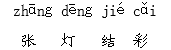 解析 大家可以采用各种形式充分地读这些词语,在读中潜移默化地积累词语。读的时候,我们要注意把读音读准确。“张灯结彩”的“结”读jié。“不同凡响”这个词语并没有在课文中出现,我们可以运用喜欢的方法理解这个词语的意思,可以查词典,可以用它说一句话等,以便达到积累的目的。