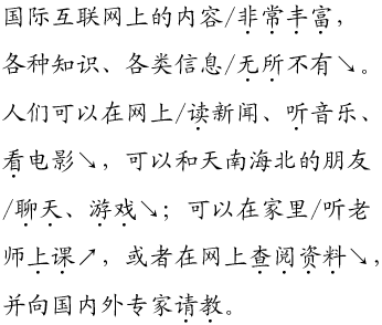 解析 这是一篇介绍现代科技的说明文。朗读基调是奇妙洋溢的,语气是亲切的,语调是轻快上扬的,节奏是明快的。朗读时,要抓住关键词句的表达,如感受“巨型”“团团包住”“无数条”“亿万台”“飞速”“世界各地”“不是……而是……”“不仅……还……”“虽然……却……”等语气语调的变化。