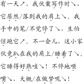 背诵第五、六自然段,一定要在熟读的基础上进行。可用下列词语引导背诵:白天,它 ;傍晚,它 。有一天,我伏案写作时, 。我手中的笔 。不一会儿, 。它睡得好熟哇! !