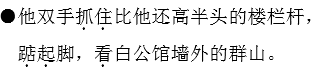 解析 “抓住”“踮起”“看”这几个动词的运用,准确刻画出了小萝卜头渴望自由,向往高墙外的美丽世界的强烈愿望。朗读时,这几个词应重读。