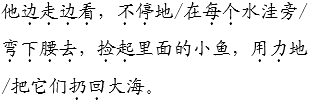 解析 这些带点的词语将小男孩全神贯注地救助小鱼的行为刻画得十分生动、具体。这也是细节描写的作用所在。