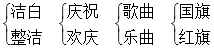 【解析】此题是对字音、字形的考查。拼读时要细心,一边根据拼音,一边结合本课所学生字来推断。书写时要注意:“庆”的广字旁的横不宜太长。里面“大”的撇一定要写成“竖撇”,捺尽量向右伸展。“曲”字的“口”应写得扁些,两竖起笔处应该错落有致——左低右高。“亿”右边“乙”折笔处应尽量向左,弯笔要尽量舒展。“洁”字右上是“士”,不是“土”。“祖”字是示字旁(礻),不是衣字旁(衤)。在写的时候,一定要注意字形,避免发生错误。