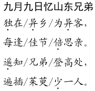 解析 背诵要在熟读的基础上进行。背诵《九月九日忆山东兄弟》时要抓住一个“忆”字,想一想诗人在重阳佳节到来时都回忆了什么;背诵《赠汪伦》时,要抓住“先叙事,再抒情”的脉络,想一想诗中写了什么事,抒发了诗人怎样的感情。先自己试着背一背,再背给同学听。