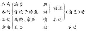 解析 第4自然段是采用“总—分”的结构来进行叙述的。先总述“海里的动物各有各的活动方法”,然后具体叙述了海参、像梭子的鱼、乌贼、章鱼、贝类是如何活动的。