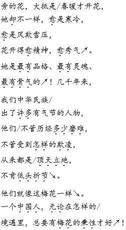 解析 这篇课文语言含蓄,寓意深刻,在读文时应用心体会,自己弄不懂的问题要提出来和同学们讨论解决。如“梅花魂”的“魂”,指的是梅花的精神。品读课文,我们就能感受到这种精神就是“不管历经多少磨难,不管受到怎样的欺凌,从来都是顶天立地,不肯低头折节”的中华民族精神。