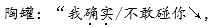 甲:啊!我当是谁呢?(傲慢地)你敢碰我吗?陶罐子!