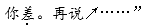 甲:和你在一起,(用手指着乙)我感到羞耻,你算什么东西!(气鼓鼓地)走着瞧吧,总有一天,我要把你碰成碎片!