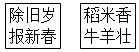 爆竹声声/除旧岁 五谷丰登/稻米香 生意兴隆/通四海 风调雨顺/家家乐